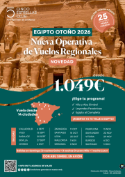 Nueva operativa Vuelos Regionales . Egipto Otoño 2026 dsde 1.049€ con salida dsde 14 ciudades